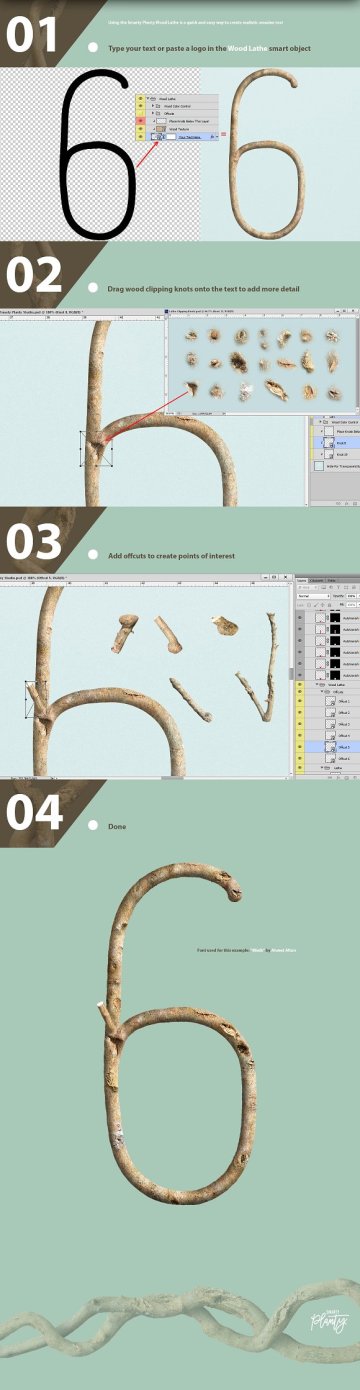 Creating wooden text in Photoshop that looks convincing has always been tricky. With Wood Lathe, making realistic wooden text has never been easier. Quickly turn text, shapes, and logos into natural looking wood in minutes, not hours. Wood Lathe is a powerful yet simple to use tool to compose beautiful display fonts, logos, illustrative designs - the list is endless.