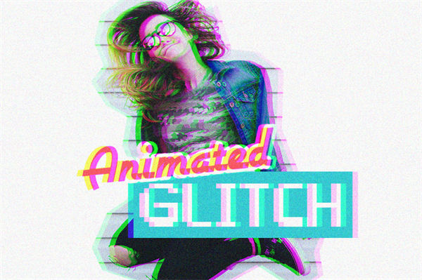 红蓝电波干扰特效PS动作Animated Glitch Photosh