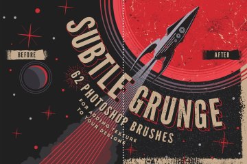 Grunge brushes are a nice way to add texture to digital designs, whether it is an illustration or a typography composition! This set features 62 Photoshop stamp brushes, including varied textures as well as rolled ink border brushes.