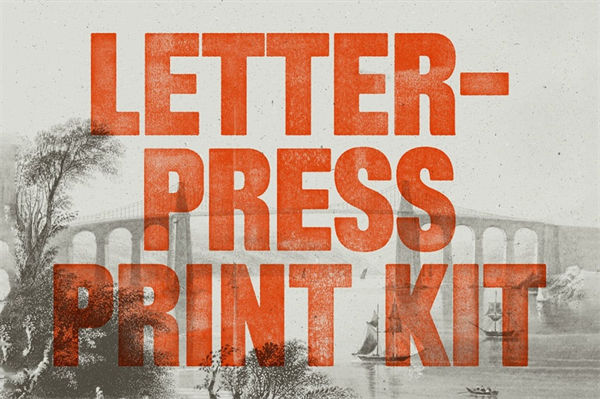 复古纹理特效PSD分层素材 Letterpress Print Kit