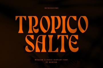Tropico Salte 字体包括大写字母、数字和大量标点符号。具有现代显示风格的衬线字体。为海报、网页设计、品牌、插图、徽章和其他一些作品而创建。