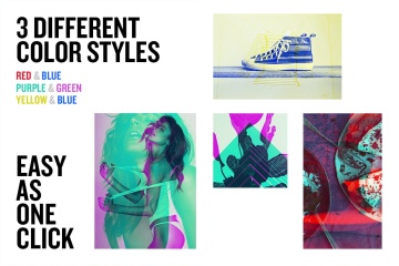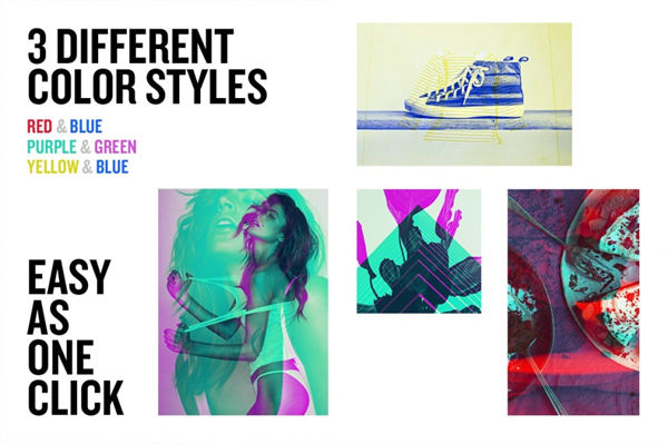 *与任何图像,形状,一切!*简单的按一下!*易于使用和良好的指导* 7种不同颜色Styles,耶!4种新风格!红色和蓝色,紫色和绿色,黄色和蓝色,橙色和青色,紫色和橙色,粉红色和绿色,蓝色和粉红色)