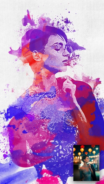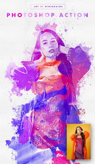 一套绚丽水彩的画笔刷动作插件 Joy Watercolor Photo
