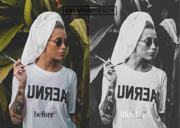 该包包含42年份的黑色和白色胶片轻放映机预设包括以下影片的复制品:爱克发,依尔福德和柯达。