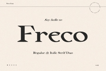 向 Freco 打招呼 - 现代衬线字体二重奏(常规 + 斜体),具有锐利而富有表现力的角落。