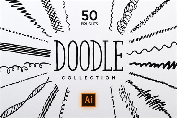 图穷联素材库 » 50个涂鸦AI矢量笔刷素材 Doodle Brush Collecti