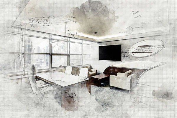 图穷联素材库 » 照片转建筑工程铅笔素描草图/蓝图效果PS动作 Architecture