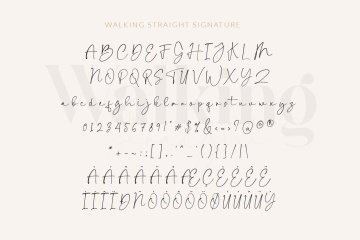Walking Straight 字体非常适合您即将开展的项目。例如奢侈标志和品牌、经典编辑设计、女性杂志、化妆品品牌、时尚宣传、艺术画廊品牌、博物馆、建筑历史、精品品牌、文具设计、博客设计、现代广告设计、卡片邀请、艺术报价、家居装饰、书籍/封面标题、特别活动等等。