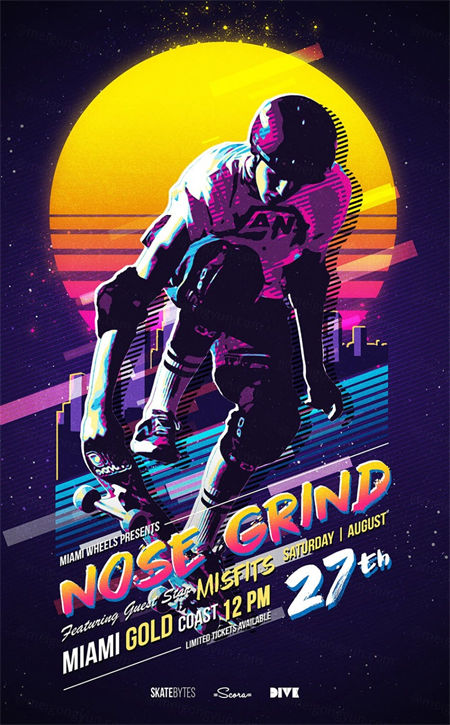 图穷联素材库 » 80年代酷炫充满活力的撞色海报快速生成PS插件 80\'s Retro