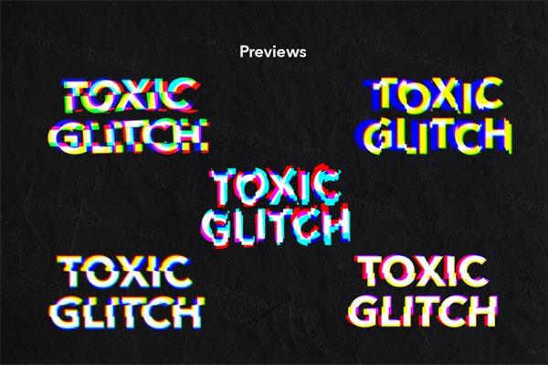 Toxic Potion Glitch Effects Pack带来10种捕捉文字效果,并伴随着14种颜色或形状腐败的照片动作,为您带来现代艺术画廊的迷幻氛围,您一定会错过。