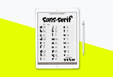 sans-serif工作表允许您将页面导入Procreate或Photoshop,并直接在工作表上以数字方式练习。你甚至可以用钢笔和铅笔打印和工作!了解我如何创建我的字母并了解不同字体样式的细微差别。