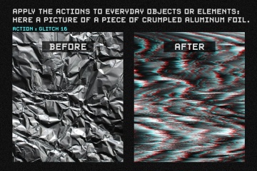 您将收到1个.atn文件,其中包含您可以直接添加到Photoshop操作集合的20个操作。(在Photoshop中打开“动作”面板,然后在菜单中选择“加载动作”,找到动作集并单击它,它将被添加到“动作”面板中。还包括两个PNG预览文件。你的照片,在你的动作面板中打开名为“熵:毛刺动作”的文件夹,选择你选择的动作,然后点击面板底部的小游戏按钮。