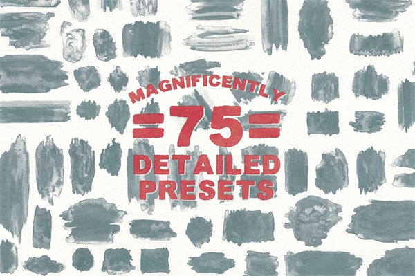 图穷联素材库 » 75个水彩画笔刷套装 75 Watercolor Brushes –
