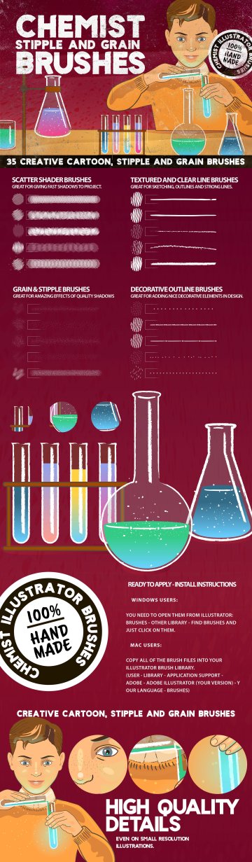 化学家 - 谷物,卡通和点画 - 35个画笔适用于Adobe Illustrator CS3 +
