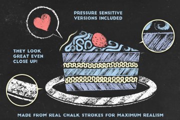 作为媒介的粉笔有很多用途 - 用于插图,菜单板,手工刻字以及作为课堂学习辅助工具。这套真正详细的数字粉笔刷也不例外!