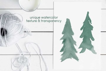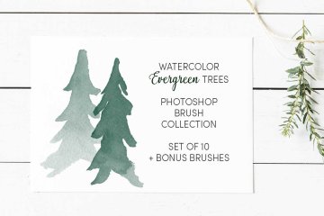 13个水彩常绿树(圣诞松树)笔刷集合Watercolor_Evergr