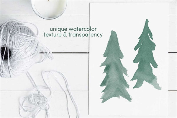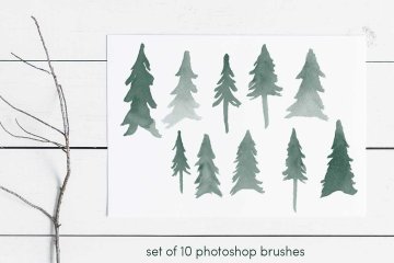 图穷联素材库 » 13个水彩常绿树(圣诞松树)笔刷集合Watercolor_Evergr