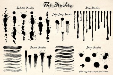 图穷联素材库 » 趣味的手绘墨水笔刷素材 Splatter Smear Brushes