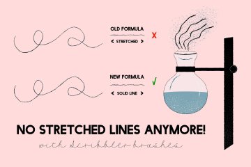 用于Adobe Illustrator的Scribbler Brushes由新公式制作!没有拉伸的线条了!短线或长线 - 您不必关心线纹理。使用新配方,它对所有长度保持相同!