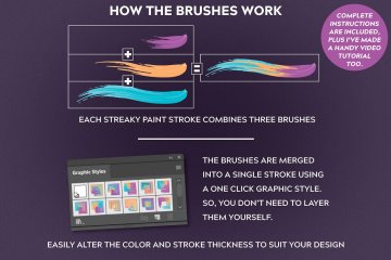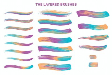 “多色混合涂料矢量画笔,是一个创新的画笔层系统,只需点击一下按钮,即可为您的项目提供动态,独特的风格!这些画笔是一项真正的创新成就。在我的设计工具箱中,作为必要的必需品!“