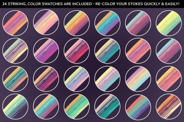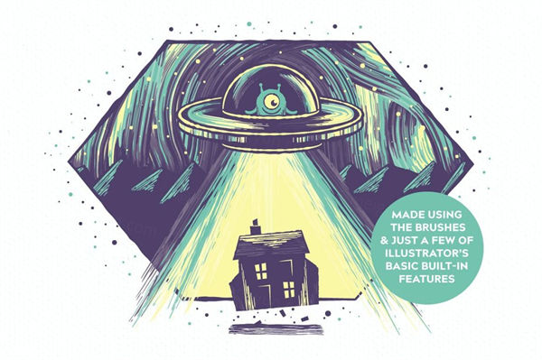 每个多色笔划组合了三种不同的笔刷,这些笔刷使用一键式图形样式进行包装。可以使用与普通Illustrator画笔相同的方式调整颜色和笔触宽度。