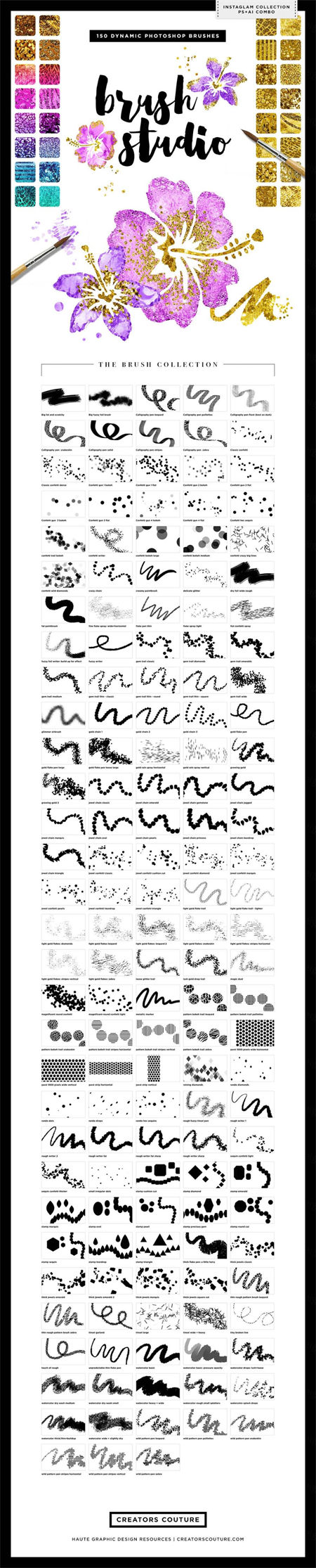 毫无疑问,笔刷工具一直是最受欢迎的素材之一,而今天分享的是,140+ 黄金 Photoshop纹理&笔刷 和 Illustrator CC Combo 打包下载,里面包含大量的,精细的笔刷效果,这样你可以轻松制作出各种高品质的样式,希望您喜欢,enjoy!