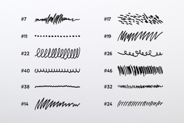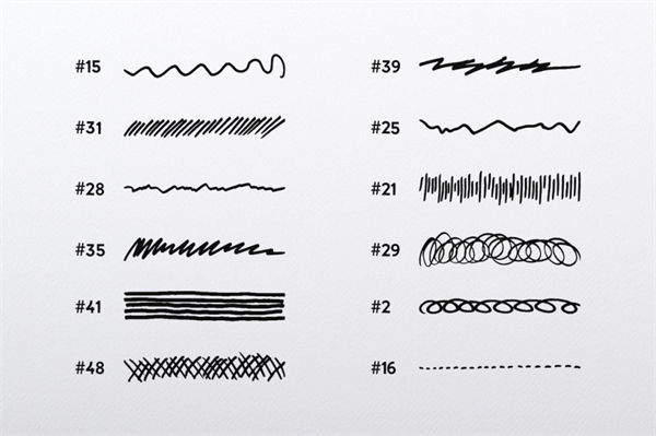 50个独特的AI可爱涂鸦画笔笔刷大集合,都用真正的钢笔和铅笔在纸上制作,扫描,追踪和打磨。