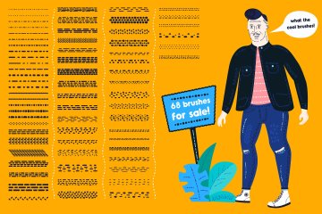 使用画笔进行艺术线条制作或以现代风格制作动态细节。有一个广泛的包内刷。使用多种颜色版本的画笔,您可以制作独特的大胆风格插图。