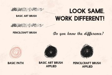 ??查看促销图片中的示例,您将看到基本画笔和Pencilcraft画笔之间的区别!??