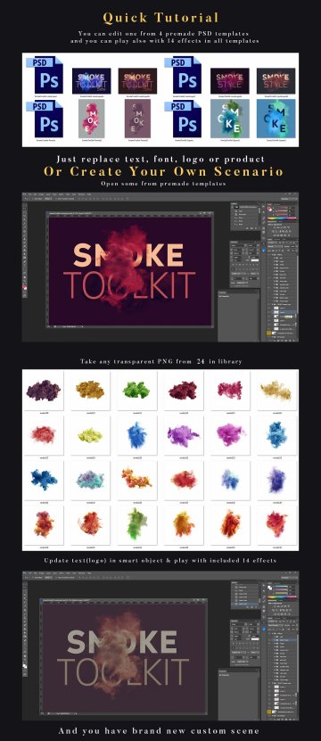 图穷联素材库 » Photoshop彩色烟雾特效文件工具包PSD_Smoke_Toolk