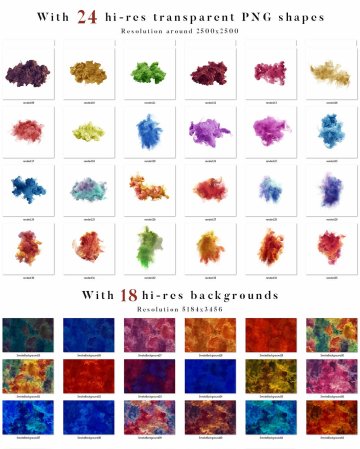 如果你正在为你的新项目寻找大量的烟雾效果,形状,画笔,图案或背景,那么这个包就是你正在寻找的东西。包含24个烟雾透明PNG图像,Photoshop ABR文件中的24个画笔,JPG和Photoshop PAT文件中的12个模板,18个高分辨率背景和4个分层PSD模板。使用这些Photoshop模板,您可以在几秒钟内为照片,演示文稿,广告或传单创建自己的烟雾效果!