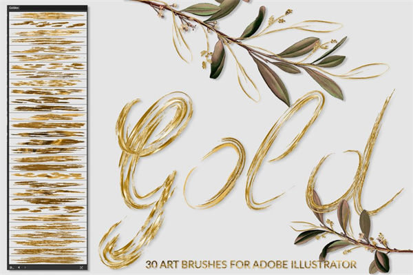 图穷联素材库 » 奢华金色数字艺术绘画画笔AI笔刷素材 Gold Brushes for