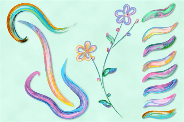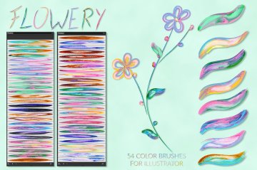 图穷联素材库 » 绚丽多彩的数字艺术绘画画笔AI笔刷素材 Flowery Brushes