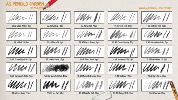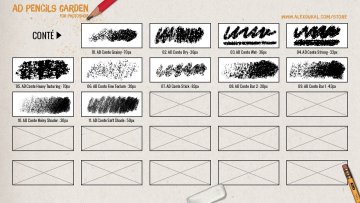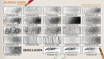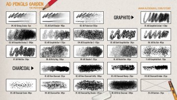 这套包括什么? 该集包含105个Photoshop预设(.TPL文件)。看一下参考表:AD Pencils Garden - 参考表: