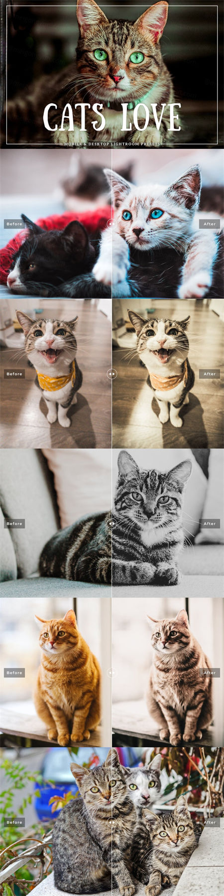 图穷联素材库 » 宠物猫咪Lightroom预设套装Cats Love Mobile