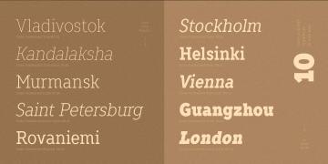 非常适合创建标识和徽标以及室内设计和导航的设计师。字体的特殊功能包括经典公式:薄、轻、常规、粗体和黑色。