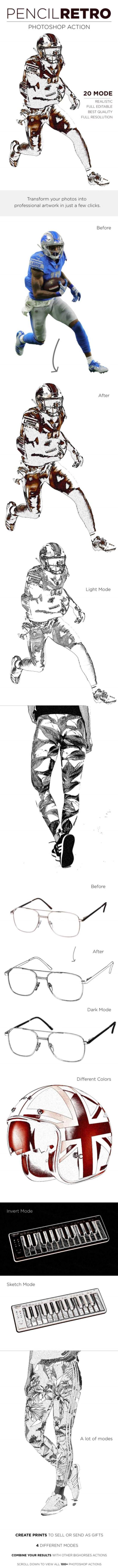 复古铅笔素描照片处理效果ps动作Retro Pencil Photoshop
