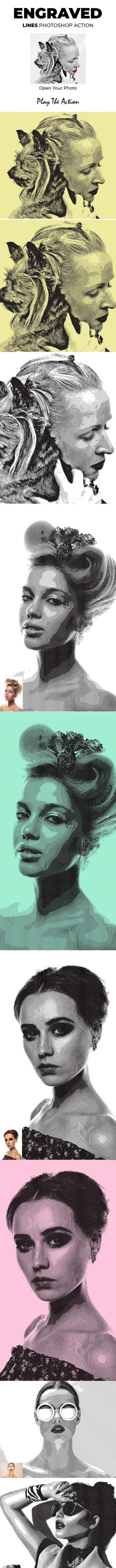 图穷联素材库 » 复古刻线素描艺术效果ps动作Engraved Lines