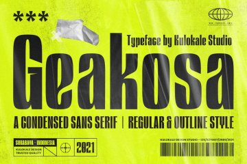 Geakosa 是一种浓缩的无衬线显示字体,风格与其他字体大不相同。这种字体有两种样式,常规版和大纲版。