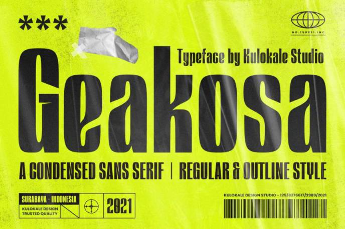 Geakosa 非常适合用于海报、社交媒体、头条新闻、杂志标题、服装、大型印刷格式 - 以及您想被看到的任何地方。受到当前流行的设计风格的启发,这是您在这个现代时代倾注的每一个想法的所有需求的答案。