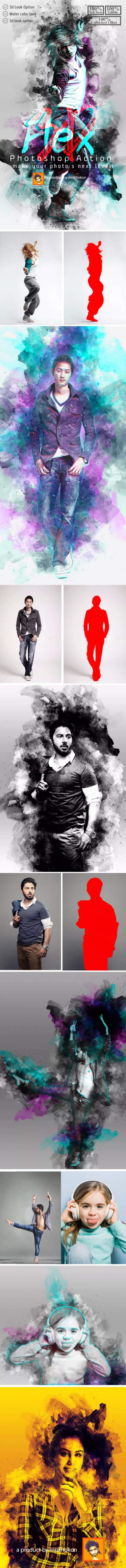 3D柔软水彩分散效果ps动作下载Flex Photoshop Action