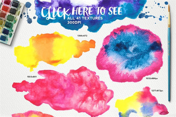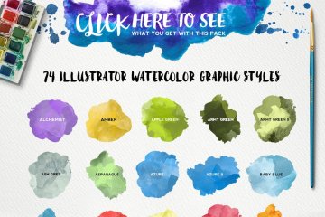 图穷联素材库 » 水彩插画AI笔刷设计师套装 Watercolor KIT Illus