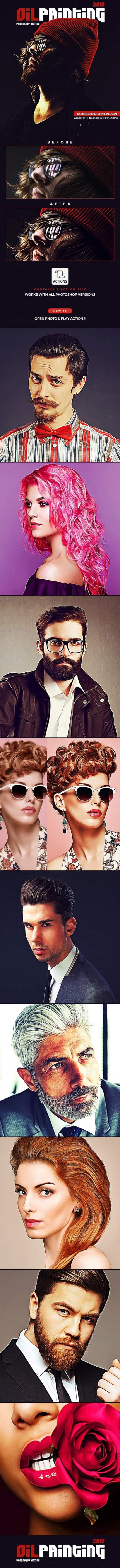 肖像摄影照片油画效果一键生成Ps动作Photoshop Action