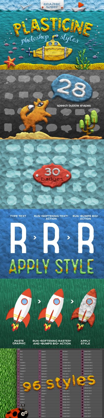 图穷联素材库 » PS动作卡通装饰橡皮泥风格ps效果PLASTICINE Photosh