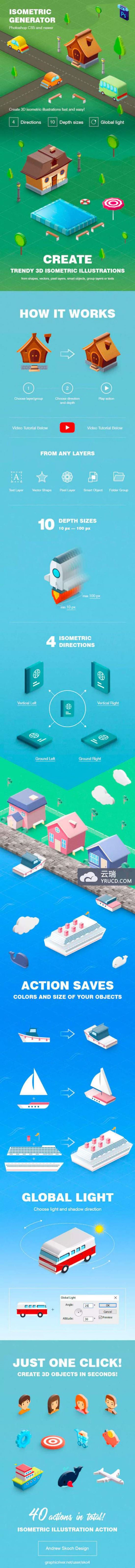 超高级多角度2.5D插画生成PS动作isometric_illustration