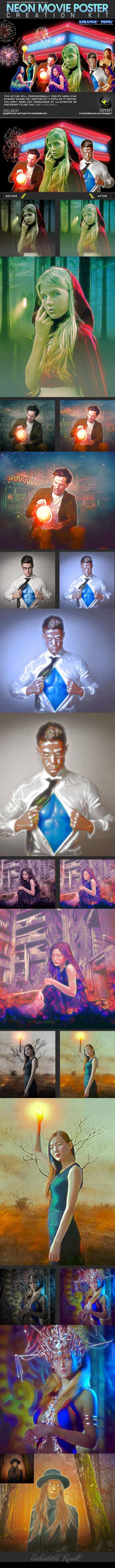 霓虹灯电影海报照片处理效果ps动作7Neon Movie Poster Kit