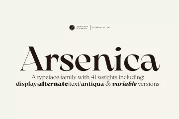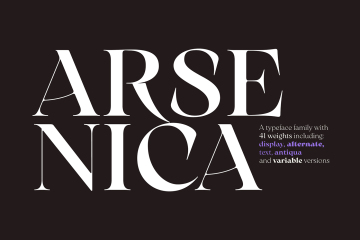 Arsenica 是由 Francesco Canovaro 为 Zetafonts 设计的衬线字体,由包括 Mario De Libero、Andrea Tartarelli 和 Cosimo Lorenzo Pancini 在内的设计团队开发。