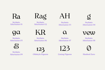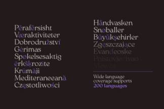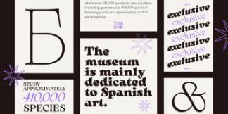 最终结果是一个包含 41 个权重的超家族,用超过 900 个字形的扩展字符集覆盖了设计空间,使用拉丁字母和西里尔 字母完全覆盖了 200 多种语言 。Arsenica 的所有重量都带有一整套开放式功能,由于风格集、 自由连字、竞争性替代 和 位置编号,允许探索其复古风格的视觉发明。整个系列中包含两种可变字体,让您可以探索设计空间并精确控制重量和光学尺寸设计变化。