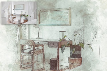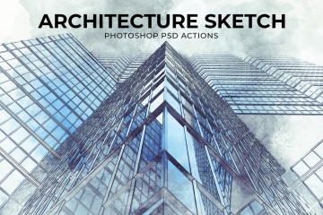 手绘蓝图建筑素描PSD动作