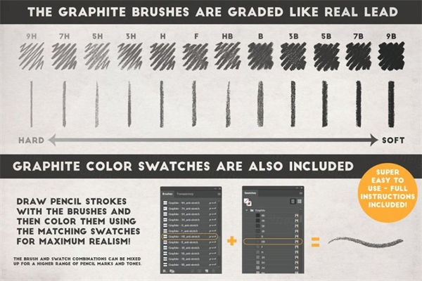 图穷联素材库 » 常见铅笔型号笔画AI笔刷 Perfect Pencils Brush
